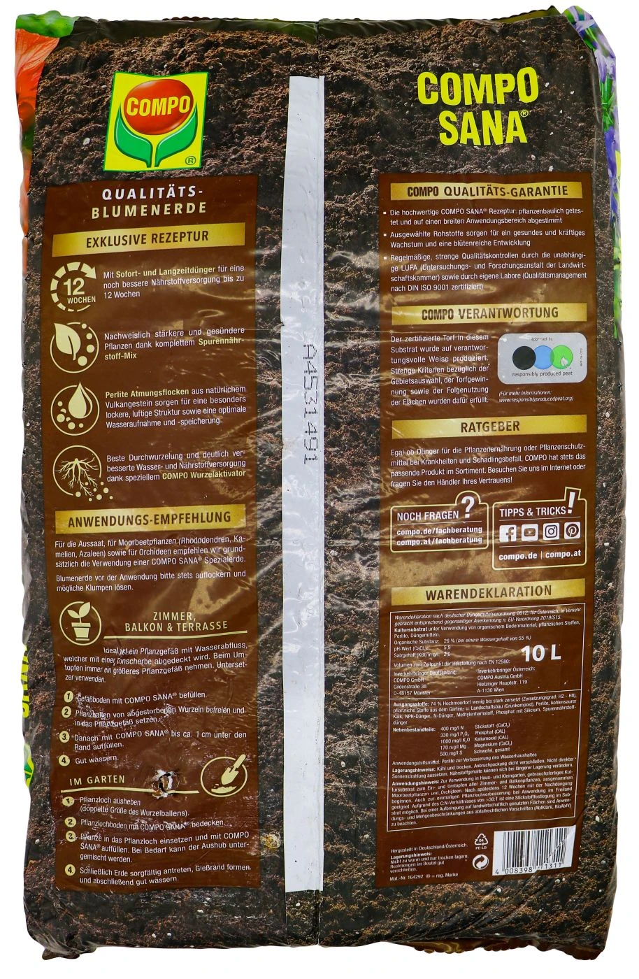Compo Sana Qualitäts-Blumenerde bietet deinen Zimmer-, Balkon- und Gartenpflanzen eine 8-wöchige Nährstoffversorgung.