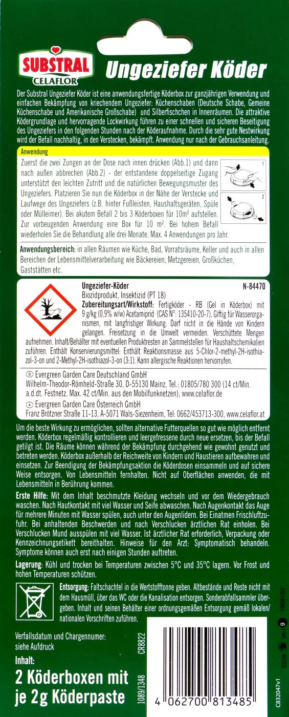 Der Substral Celaflor Ungeziefer-Köder hat bei mir Wunder gewirkt! Die Ameisen in meiner Küche sind endlich verschwunden. Sehr einfach anzuwenden und effektiv.